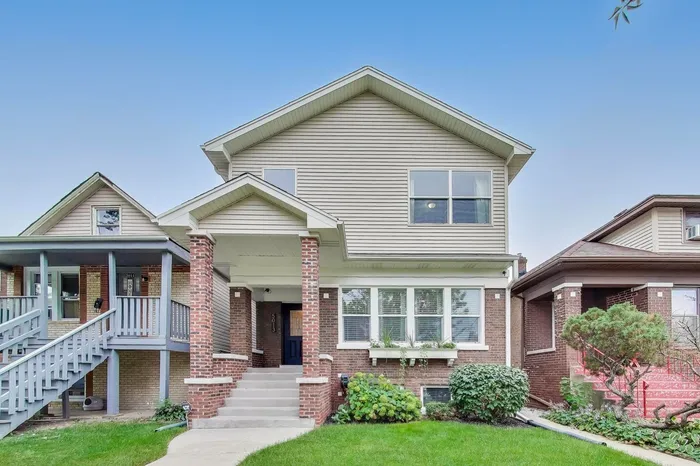 Welcome to this beautifully reimagined contemporary Chicago home in the heart of Portage Park. Originally a classic bungalow, this residence has been graciously expanded with a full second story addition and a finished lower level. A perfect layout for modern city living with 5 bedrooms, an additional versatile room for an office or creative space, and 3.5 baths. Step past the brick pillars at the front door and enjoy an open floor plan with hardwood floors and draped custom window treatments. Moving through the main floor, you are greeted by the newly renovated kitchen featuring opulent lighting fixtures, sleek cabinetry, granite countertops and premium stainless steel appliances. A space ideal for everyday meals and entertaining guests. Upstairs, take in the primary suite with architectural built-ins leading to ample walk-in closet space and a double vanity en-suite bath. Enjoy alfresco dining on the attached deck, fully designed with locally crafted wooden benches that blend style and functionality. Tailored privacy screens create a secluded atmosphere. This outdoor haven invites long conversations, morning coffees, and weekend BBQs. From there, walk into the fully fenced yard leading to a 2-car detached garage, complemented by an additional carport for a third vehicle or flexible use. For added protection and peace of mind, home comes equipped with a comprehensive security system including the addition of seven wired external IP cameras. Homeowners have meticulously maintained every corner of this home. A true gem located just steps away from Portage Park, Target, Jewel, Aldi, cafes, restaurants, and boutique shops. Also conveniently located near public transportation and the Kennedy expressway.